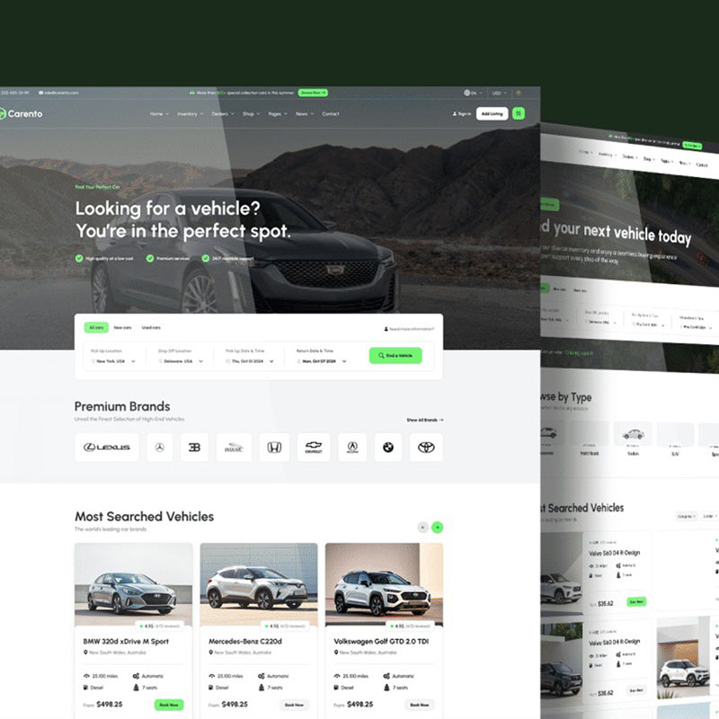 CARRERA - автомобильный дилер и бронирование аренды, идеальное решение для создания профессионального и современного веб-сайта для проката автомобиля или автосалона. Независимо от того, предлагаете ли вы услуги по аренде, лизинг или демонстрируете списки автомобилей, Carrera был разработан, чтобы с легкостью удовлетворить все ваши потребности.