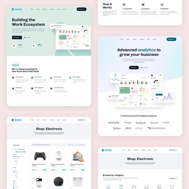 EOS — это мощный многофункциональный скрипт для агентств и стартаповl Он предлагает готовое решение для создания современных веб-сайтов с расширенными возможностями электронной коммерции и управления контентом. Вы можете избежать дорогостоящей веб-разработки и минимизировать свои затраты на дизайн с помощью готового многоцелевого сайта компании - EOS .