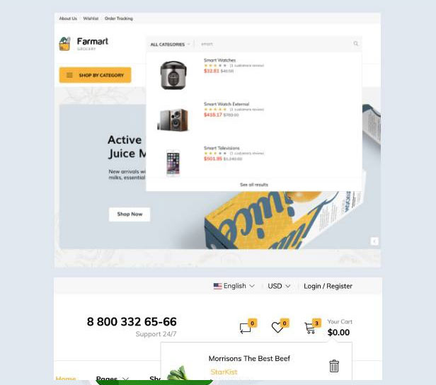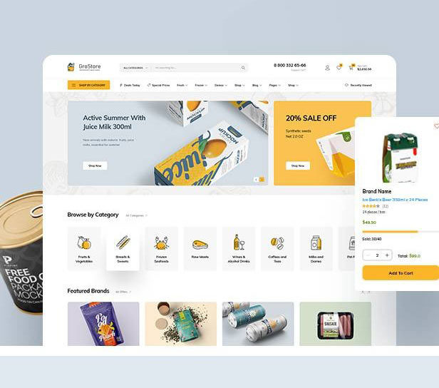GroStore - это чистый и современный движок для интернет-магазинов. С чистым и модным дизайном GroStore сделает ваш интернет-магазин более впечатляющим и привлекательным для зрителей. Помогите так быстро увеличить высокий уровень конверсии, чтобы покупать продукт с вашими клиентами.